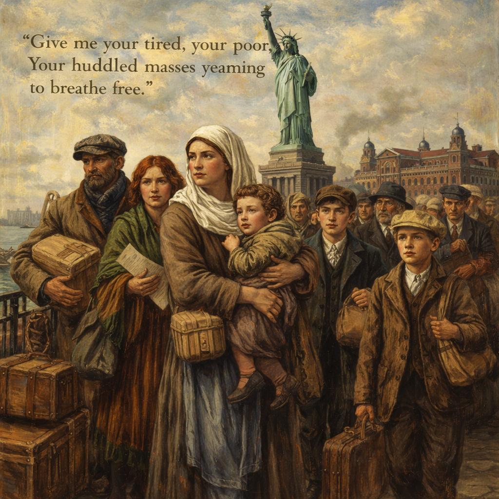Even the Statue of Liberty poem—deeply compassionate—speaks of breathing free. It promises a door. It does not promise that once you step through it, the grind disappears.
