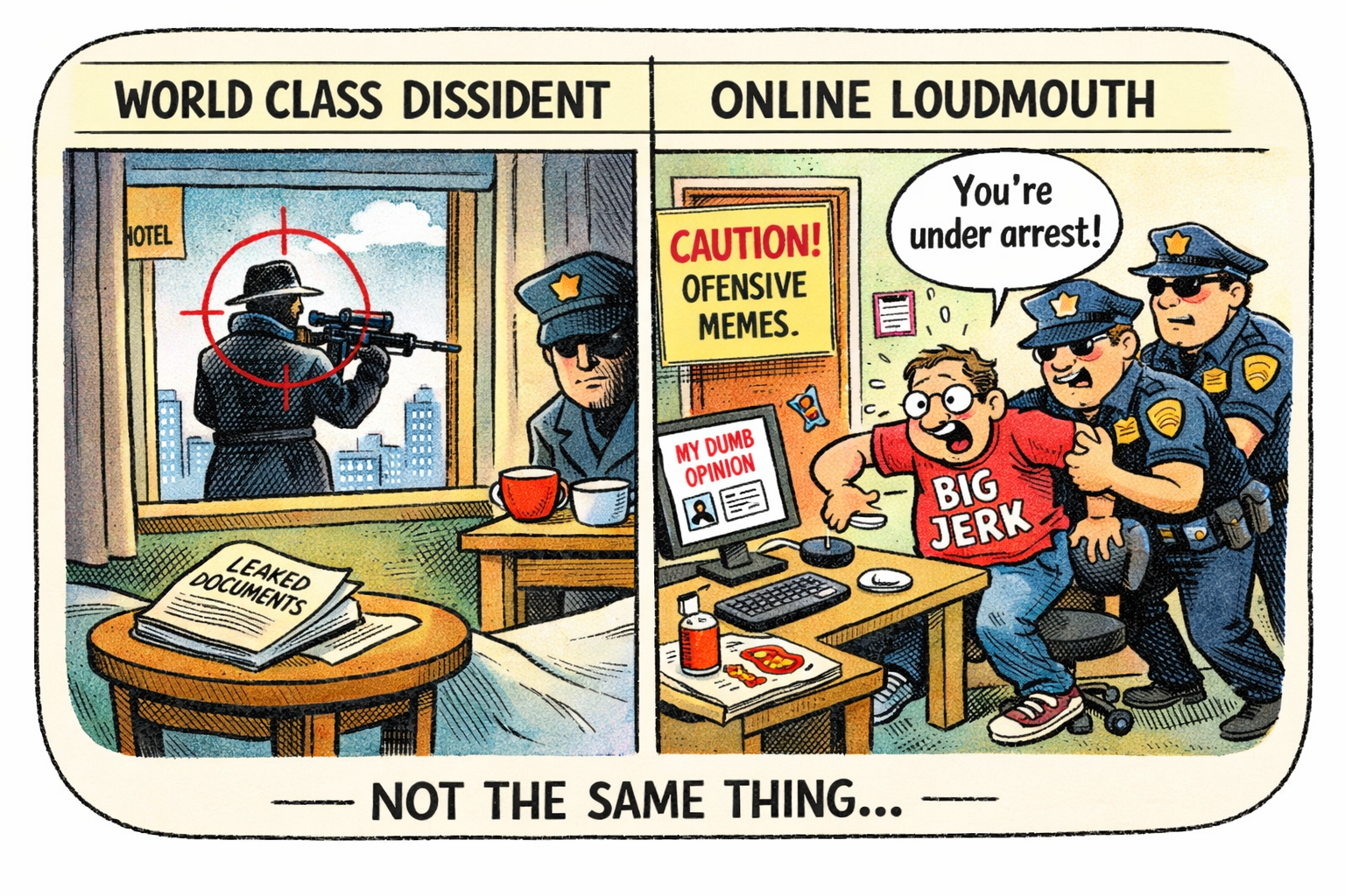 There is a meaningful distinction between rare, targeted state violence against elite political dissidents and the routine criminalization of ordinary speech.