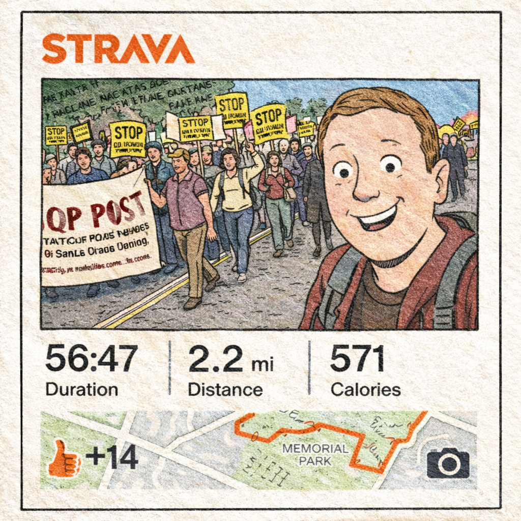 The tragedy is real. To walk for justice and leave no data behind is to become a ghost. There is a certain democratic poetry in all this. Strava doesn’t care who you are. It doesn’t care what you believe. It just wants your steps. A billionaire and a broke college kid are equal in the eyes of the GPS. You are all just blinking dots on a map, sweating toward something.