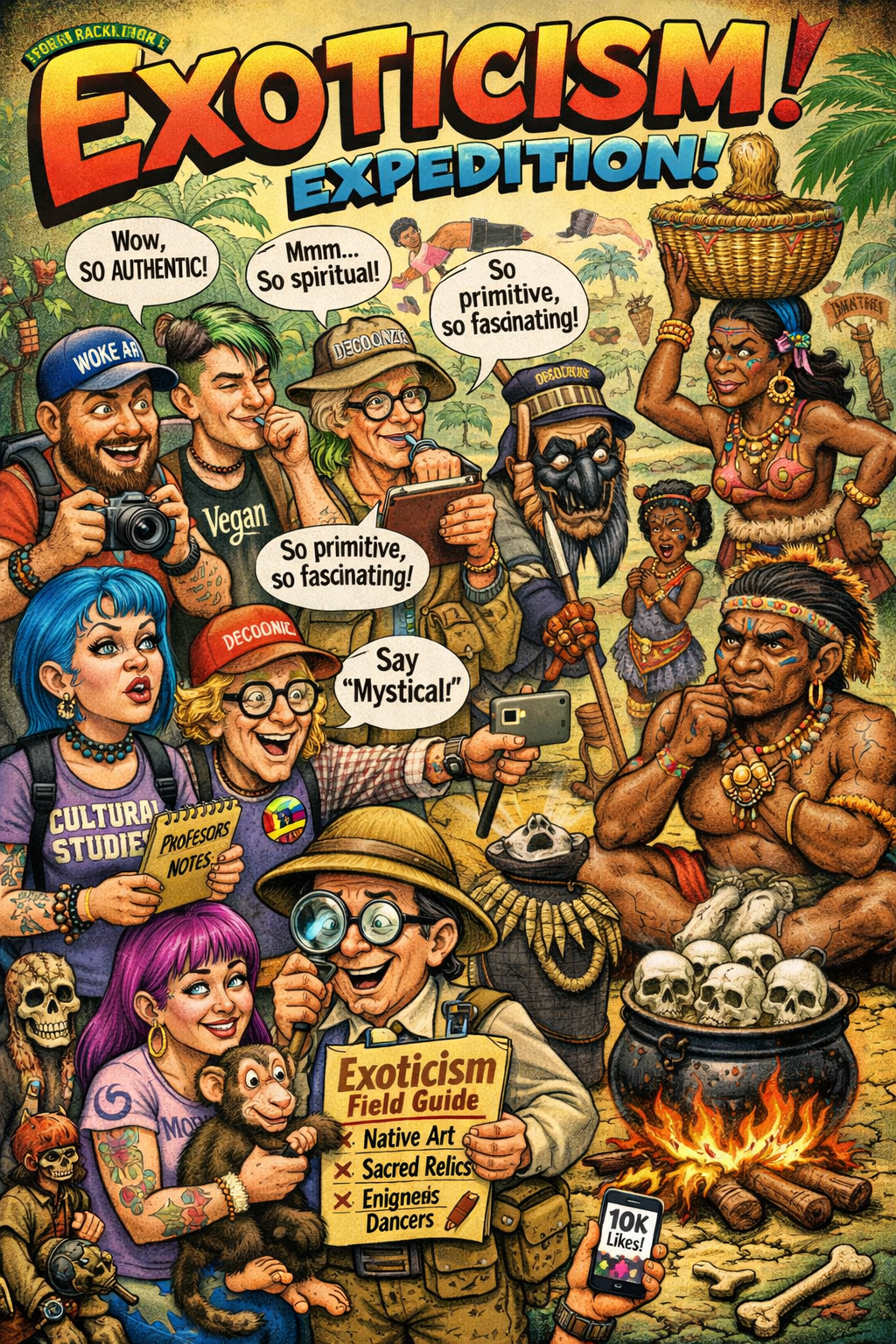Exoticism is the tendency to view cultures outside one’s own as strange, alluring, or fundamentally “other,” reducing them to aesthetic or symbolic objects. It romanticizes difference while flattening complexity, often reflecting more about the observer’s gaze than the reality of the people observed