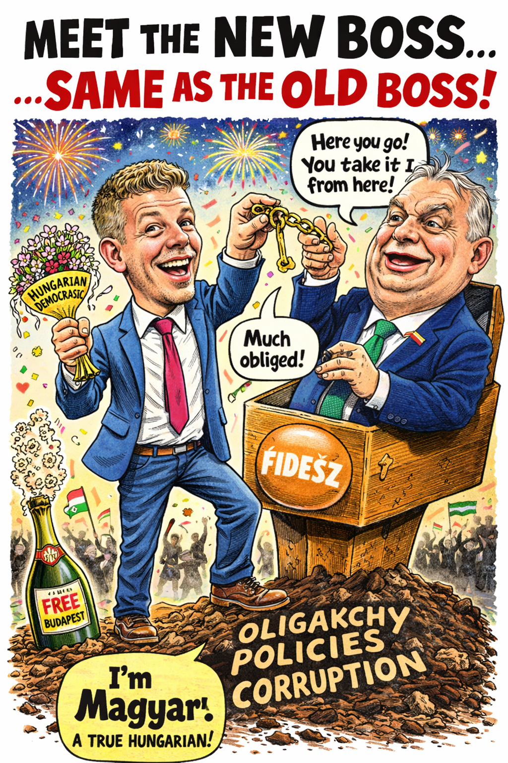 Magyar means Hungarian. Too on the nose? Peter was Orbán’s man for years. This isn’t a revolution — it’s a rebranding. Meet the new boss, grown in the same soil as the old one.